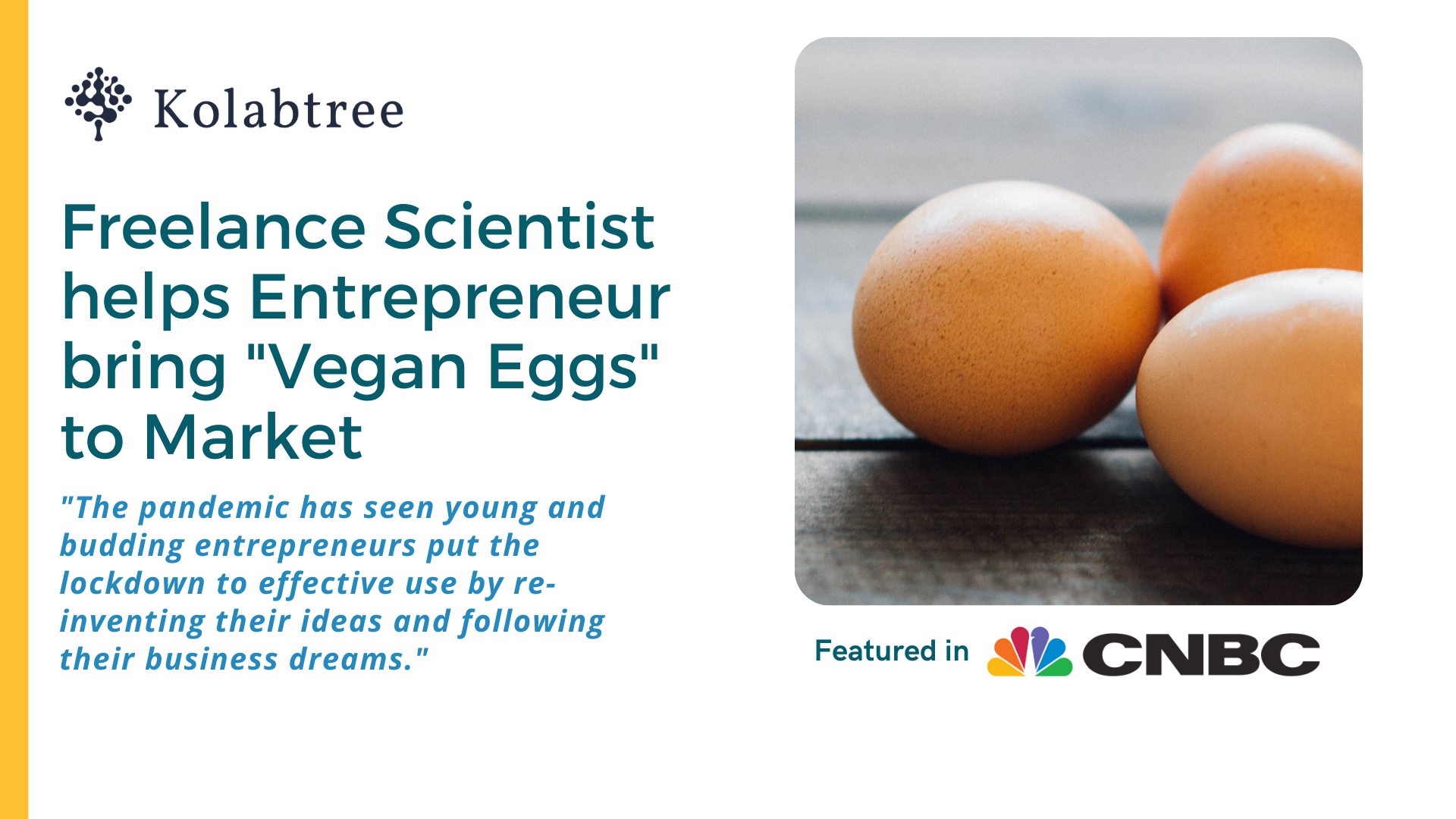 Un científico autónomo de Kolabtree ayuda a un empresario a sacar al mercado los "huevos veganos".